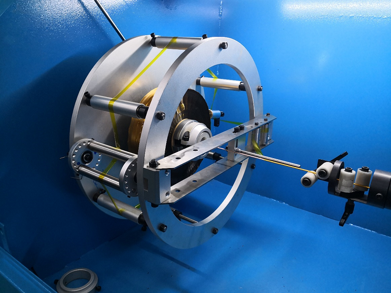 “Kapton® taping machine is designed specially to insulate round or flat conductors by applying Kapton® film. Combination of taping conductors with thermal sintering process by heating the conductor from inside (IGBT induction heating) as well as from outside (Radiant oven heating), so that the good and consistent product will be made.”